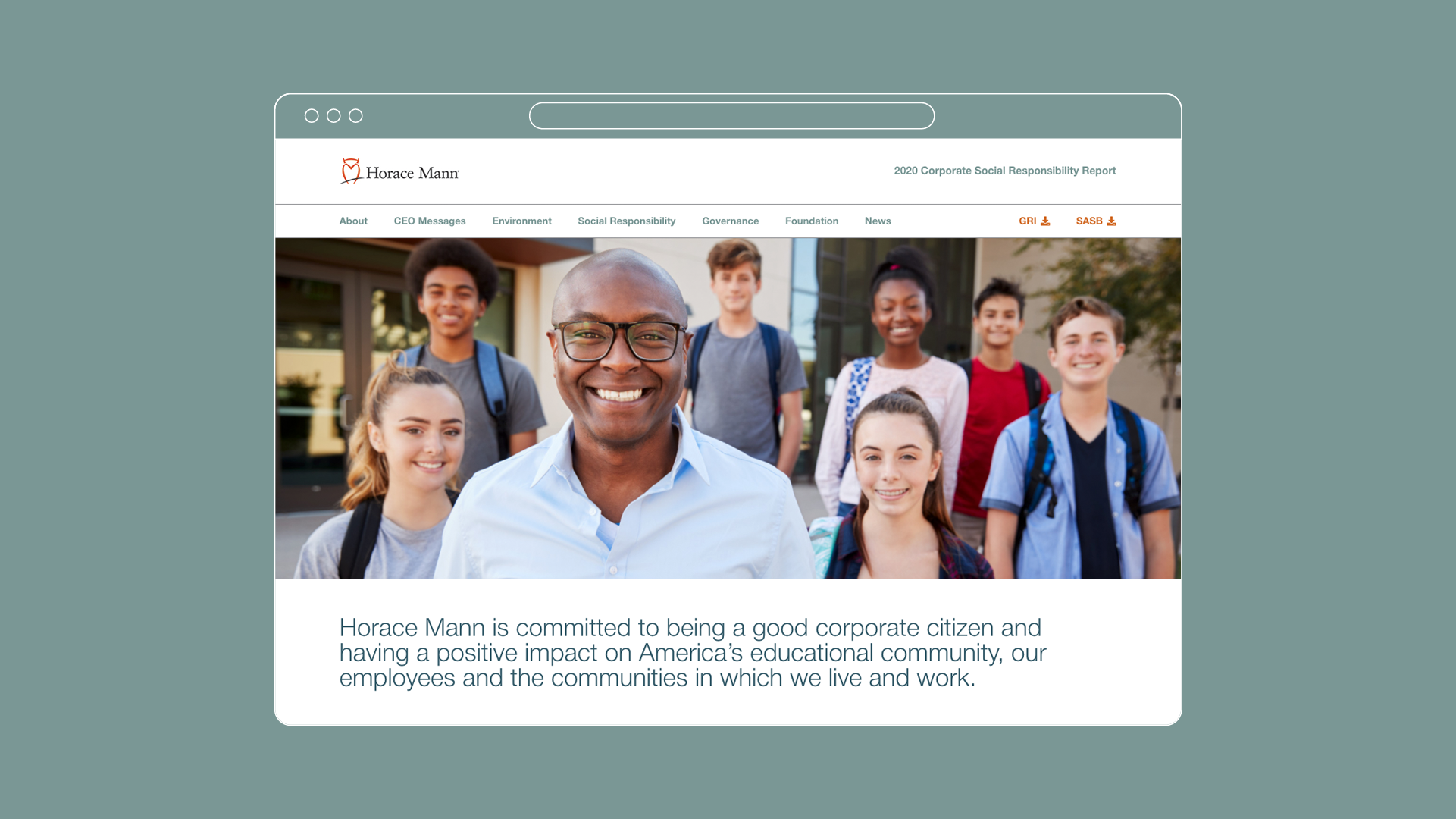 Horace Mann is the largest financial services company focused on helping America's educators and others who serve the community achieve lifelong financial success. Since 2017, I have helped centralize and brand Horace Mann’s Investor Relations and Corporate Social Responsibility (CSR) reporting. A coordinated look between the Annual Report, 10-K, Proxy materials and CSR was developed. I brought the Sustainability Report online and art directed a programmer to develop a CMS site that the client can edit themselves to keep the content updated. A PDF with hyperlinks for online distribution and a short-run print version were also designed and produced.